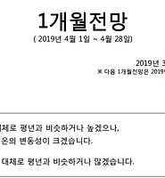 ◈ 1개월 날씨예보 요약 (2019년 3월 4일 ~ 2019년 3월 31일)